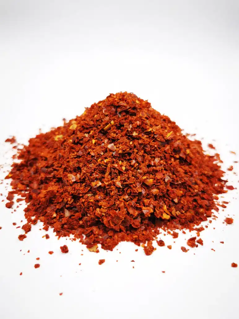 Deze rode pepervlokken hebben een pikante, maar niet overheersende smaak. Ze hebben een grove structuur en geven gerechten een dieprode kleur. Ideaal als pittig extraatje in schotels, pasta’s of salades.